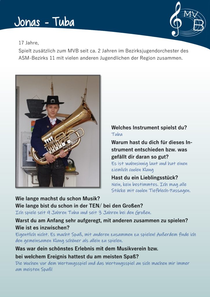 Weiter geht es heute mit Jonas und dem größten Blechblasinstrument…
