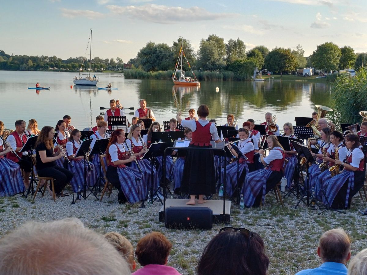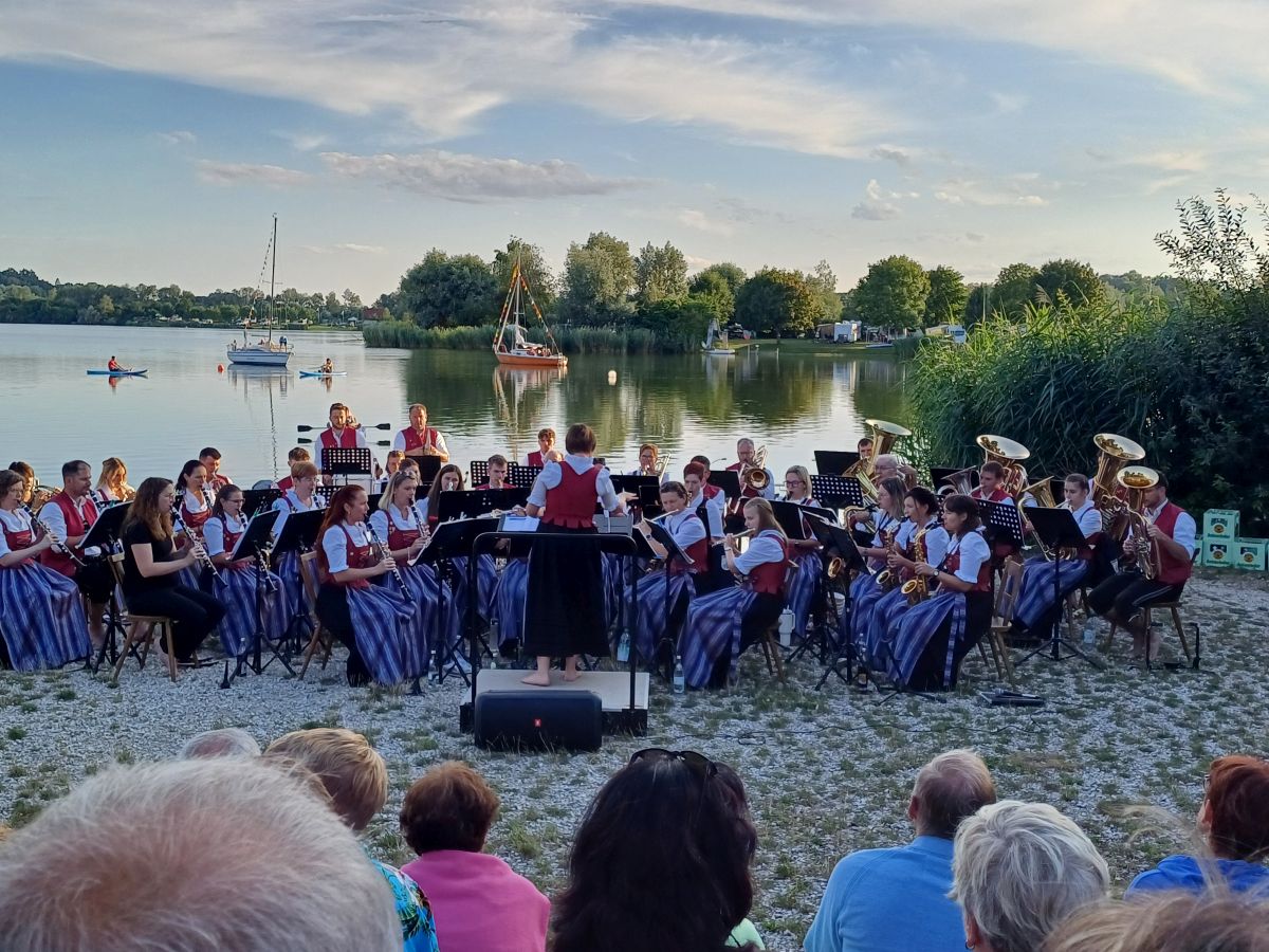 Fotos Serenade 2024 Zusammen mit den "Impffrei Böhmischen" gestalteten wir die Serenade auf der Seebühne am Oberrieder Weiher. Am Dirigentenpult stand bei uns diesmal Tobias Häußler, der Marina in ihrer Babypause vertreten hat. Dorfplatzzauber 2023 Unser erster Dorfplatzzauber war ein toller Erfolg. Beide Tage waren sehr gut besucht und sogar das Wetter zeigte sich von der winterlichen Seite. Als Musikverein lag uns natürlich sehr viel daran, ein durchgehendes musikalisches Programm auf der eigens gebauten Bühne anbieten zu können. Herzlichen Dank an alle unsere Ensembles, die sich dafür gebildet und vorbereitet haben. Serenade 2023 Es war ein herrlicher, heißer Sommerabend - optimal für unser jährliches Konzert an der Seebühne am Oberrieder Weiher.Diesmal hatten wir den Musikverein Deisenhausen eingeladen, mit uns dieses stimmungsvolle Konzert zu gestalten. Füssen 2023 An einem heißen Sonntag Anfang Juni hatten wir die Ehre und das Vergnügen, ein Frühschoppenkonzert am Festspielhaus in Füssen zu spielen. Direkt am Ufer des Forggensees mit dem Blick auf Schloss Neuschwanstein und voll besetztem Biergarten - es war ein besonderes Erlebnis. Frühjahrskonzert 2023 Nach langer Zeit ließen wir eine alte Tradition wieder aufleben und spielten ein Gemeinschaftskonzert mit dem Männergesangsverein Rennertshofen-Nordholz. Das Vereinsheim war gut gefüllt und die Zuhörer spendeten viel Applaus. Johanna Häußler und Tamara Jehle traten als Solistinnen auf. Wertungsspiel Bezirk 11 2023 Unser Auftritt bei den Wertungsspielen des heimischen Bezirks 11 in Neuburg war wieder sehr erfolgreich. Mit "Infinity" und "Variations on a Korean Folksong" kamen wir zu einem "ausgezeichneten Erfolg" in der Höchststufe. Weihnachtskonzert 2022 Unser Vereinsheim ist beim Weihnachtskonzert fast aus allen Nähten geplatzt.Wir sind völlig überwältigt! Es war ein tolles Konzert mit tollem Publikum!In diesem festlichen Rahmen durfte unsere Vorständin Birgit Lecheler unsere Musikerkollegen Georg Dietrich und Fritz Zeller mit über 50-jähriger Vereinszugehörigkeit zu Ehrenmitgliedern ernennen. Serenade 2022 Es war wieder ein sehr stimmungsvoller Auftritt am Oberrieder Weiher. Zusammen mit dem Musikverein Tafertshofen unerhielten wir die zahlreichen Zuhörer an der Seebühne. Pfingstkonzert_2022 Nach über zwei Jahren Zwangspause konnten wir am Pfingstmontag endlich wieder ein Konzert spielen.Es war unser erstes Konzert mit Marina Beer am Dirigentenpult und wir konnten auch unsere neue Tracht einweihen. Weihnachtskonzert 2019 Am 2. Weihnachtsfeiertag spielten wir unser jährliches Weihnachtskonzert unter bewährter Leitung von Robert Schwärzle. Ein voller Saal und ein begeistertes Publikum machten es zu einem besonderen Erlebnis für uns. Den ersten Teil gestaltete die Jugendkapelle TEN. Dorffest 2019 Auch im Jahr 2019 verlief unser Dorffest reibungslos und bei bester Stimmung. Am Freitag Abend stieg die Party mit "Notausgang". Am Samstag kamen die Freunde der Egerländer Blasmusik beim Musikverein Waldstetten auf ihre Kosten.Gottesdienst und Frühschoppen umrahmte der Musikverein aus Langenhaslach und zum Abschluss gab es wieder Blasmusik vom Feinsten mit "Alpenblech". Galakonzert mit Brass Band A7 2019 Unser Galakonzert Ende April zusammen mit der Brass Band A7 war ein tolles Erlebnis. Die Zuhörer in der Roththalhalle in Buch waren begeistert. Die Dirigenten Robert Schwärzle und Thomas Wolff hatten ein sehr ansprechendes Programm mit ihren Orchestern einstudiert. Weihnachtskonzert 2018 Am zweiten Weihnachtsfeiertag fand wieder unser Weihnachtskonzert zusammen mit der Jugendkapelle TEN statt.Neben zahlreichen musikalischen Höhepunkten konnten Heidi Krones für 25 Jahre und Georg Lecheler für 40 Jahreaktives Musizieren geehrt werden. BZMT Ziemetshausen 2018 Zusammen mit dem Musikverein Tafertshofen nahmen wir am Bezirksmusikertreffen in Ziemetshausen teil.Zuvor gab es eine ordentliche gemeinsame Marschierprobe. Gemeinschaftskonzert Gerlenhofen 2018 Ende April spielten wir gemeinsam mit der Musikkapelle Gerlenhofen ein Konzert in der Mehrzweckhalle in Gerlenhofen. Ein Teil des Erlöses kam der Kartei der Not zugute. Weihnachtskonzert 2017 Unser Weihnachtskonzert 2017 wurde von der Jugendkapelle TEN unter der Leitung von Rainer Wörz eröffnet. Im Rahmen unseres Konzerts wurden Melanie Deschelmayer, Markus Reisch und Reinhard Kaiser für 25 Jahre aktives Musikieren geehrt. Unser Dirigent Robert Schwärzle konnte sein 10-jähriges Dirigentenjubiläum feiern. Serenade am Oberrieder Weiher 2017 Es war nicht der laue Sommerabend, auf den alle gehofft haben, aber mit unserem treuen Publikum entstand dennoch die besondere Atmosphäre. Zusammen mit Stolz ohne Holz spielten wir am Ufer des Oberrieder Weihers. Biergarten Munding 2017 Sonnenschein, voll besetzter Biergarten, gute Stimmung - was will man mehr. Im Schatten der Kastanienbäume ließ es sich gut aushalten beim Frühschoppen im Gasthof Munding. Bier Weißwurst Blasmusik 2017 Bei herrlichem Wetter spielten wir einen Frühschoppen auf dem neuen Dorfplatz. Konzert Kontraste 2017 Sinfonisch trifft böhmisch-mährisch - ein Konzertabend der Kontraste. Unser Konzert in der Rothtalhalle in Buch zusammen mit den Billenhauser Musikanten war ein voller Erfolg. Super Leistung beider Kapellen vor vollen Rängen. Kinderfasching 2017 Der Kinderball am Faschingsdienstag war wieder sehr gut besucht. Tanzeinlagen und zahlreiche Spiele sorgten für gute Stimmung bei den Besuchern. Musik an der Krippe 2017 Gegen Ende der Weihnachtszeit gestalteten wir in der Pfarrkirche Breitenthal eine besinnliche Stunde mit Musik samt Blechbläserquartett und Alphörner. Weihnachtskonzert 2016 Wie schon seit Jahrzehnten fand am 2. Weihachtsfeiertag unser Konzert im Vereinsheim satt. Unsere Jugendkapelle machte den Auftakt. Drei Musiker wurden für 50 Jahre aktives Musizieren geehrt. Dorffest 2016 Es war das heißeste Dorffest seit langem. DJ Sesto heizte am Freitag bei "Partyli