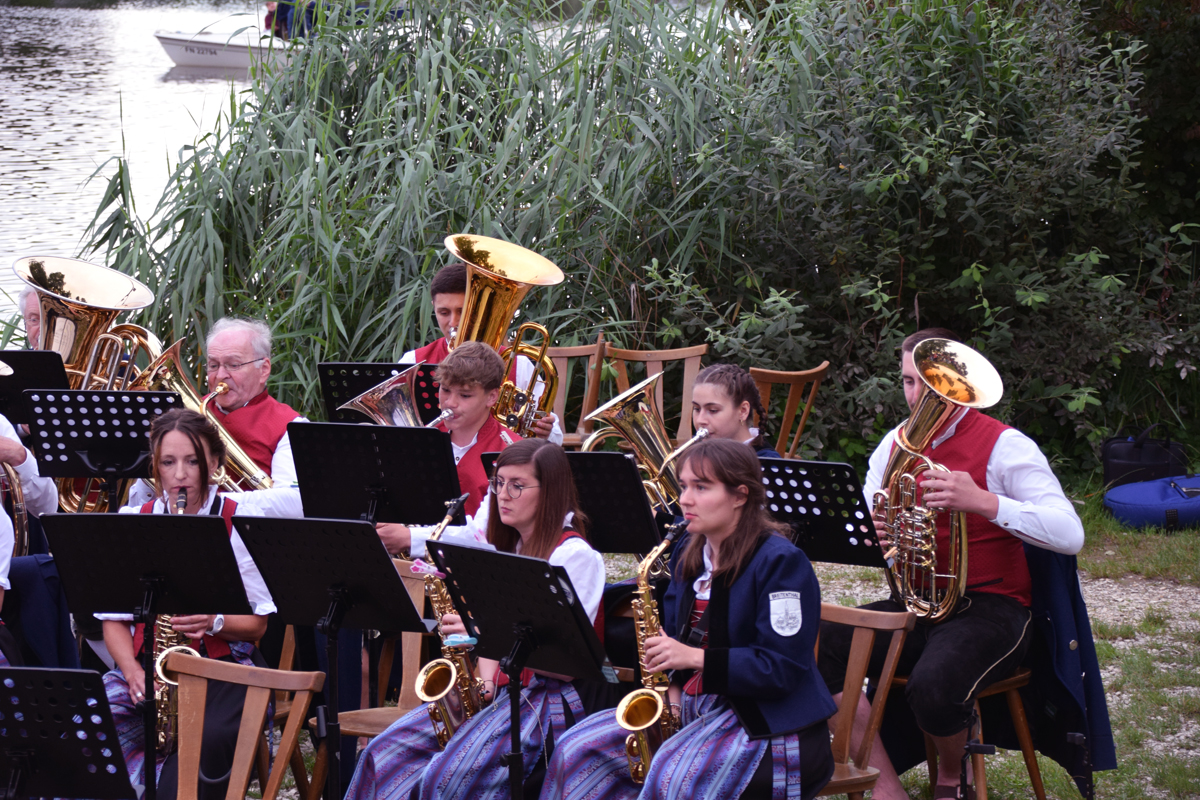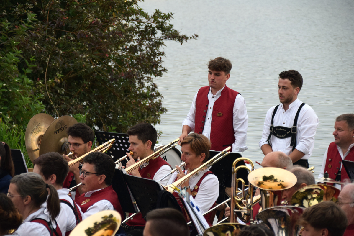 Fotos Serenade 2025 Bei der Serenade am Oberrieder Weiher hatten wir heuer wieder mehr Glück mit dem Wetter. Bei sommerlichen Temperaturen und vollen Reihen genossen wir den Open Air Auftritt barfuß. Den zweiten Teil gestalteten unsere Freunde aus Nattenhausen. Dorfplatzzauber 2023 Unser erster Dorfplatzzauber war ein toller Erfolg. Beide Tage waren sehr gut besucht und sogar das Wetter zeigte sich von der winterlichen Seite. Als Musikverein lag uns natürlich sehr viel daran, ein durchgehendes musikalisches Programm auf der eigens gebauten Bühne anbieten zu können. Herzlichen Dank an alle unsere Ensembles, die sich dafür gebildet und vorbereitet haben. Serenade 2023 Es war ein herrlicher, heißer Sommerabend - optimal für unser jährliches Konzert an der Seebühne am Oberrieder Weiher.Diesmal hatten wir den Musikverein Deisenhausen eingeladen, mit uns dieses stimmungsvolle Konzert zu gestalten. Füssen 2023 An einem heißen Sonntag Anfang Juni hatten wir die Ehre und das Vergnügen, ein Frühschoppenkonzert am Festspielhaus in Füssen zu spielen. Direkt am Ufer des Forggensees mit dem Blick auf Schloss Neuschwanstein und voll besetztem Biergarten - es war ein besonderes Erlebnis. Frühjahrskonzert 2023 Nach langer Zeit ließen wir eine alte Tradition wieder aufleben und spielten ein Gemeinschaftskonzert mit dem Männergesangsverein Rennertshofen-Nordholz. Das Vereinsheim war gut gefüllt und die Zuhörer spendeten viel Applaus. Johanna Häußler und Tamara Jehle traten als Solistinnen auf. Wertungsspiel Bezirk 11 2023 Unser Auftritt bei den Wertungsspielen des heimischen Bezirks 11 in Neuburg war wieder sehr erfolgreich. Mit "Infinity" und "Variations on a Korean Folksong" kamen wir zu einem "ausgezeichneten Erfolg" in der Höchststufe. Weihnachtskonzert 2022 Unser Vereinsheim ist beim Weihnachtskonzert fast aus allen Nähten geplatzt.Wir sind völlig überwältigt! Es war ein tolles Konzert mit tollem Publikum!In diesem festlichen Rahmen durfte unsere Vorständin Birgit Lecheler unsere Musikerkollegen Georg Dietrich und Fritz Zeller mit über 50-jähriger Vereinszugehörigkeit zu Ehrenmitgliedern ernennen. Serenade 2022 Es war wieder ein sehr stimmungsvoller Auftritt am Oberrieder Weiher. Zusammen mit dem Musikverein Tafertshofen unerhielten wir die zahlreichen Zuhörer an der Seebühne. Pfingstkonzert_2022 Nach über zwei Jahren Zwangspause konnten wir am Pfingstmontag endlich wieder ein Konzert spielen.Es war unser erstes Konzert mit Marina Beer am Dirigentenpult und wir konnten auch unsere neue Tracht einweihen. Weihnachtskonzert 2019 Am 2. Weihnachtsfeiertag spielten wir unser jährliches Weihnachtskonzert unter bewährter Leitung von Robert Schwärzle. Ein voller Saal und ein begeistertes Publikum machten es zu einem besonderen Erlebnis für uns. Den ersten Teil gestaltete die Jugendkapelle TEN. Dorffest 2019 Auch im Jahr 2019 verlief unser Dorffest reibungslos und bei bester Stimmung. Am Freitag Abend stieg die Party mit "Notausgang". Am Samstag kamen die Freunde der Egerländer Blasmusik beim Musikverein Waldstetten auf ihre Kosten.Gottesdienst und Frühschoppen umrahmte der Musikverein aus Langenhaslach und zum Abschluss gab es wieder Blasmusik vom Feinsten mit "Alpenblech". Galakonzert mit Brass Band A7 2019 Unser Galakonzert Ende April zusammen mit der Brass Band A7 war ein tolles Erlebnis. Die Zuhörer in der Roththalhalle in Buch waren begeistert. Die Dirigenten Robert Schwärzle und Thomas Wolff hatten ein sehr ansprechendes Programm mit ihren Orchestern einstudiert. Weihnachtskonzert 2018 Am zweiten Weihnachtsfeiertag fand wieder unser Weihnachtskonzert zusammen mit der Jugendkapelle TEN statt.Neben zahlreichen musikalischen Höhepunkten konnten Heidi Krones für 25 Jahre und Georg Lecheler für 40 Jahreaktives Musizieren geehrt werden. BZMT Ziemetshausen 2018 Zusammen mit dem Musikverein Tafertshofen nahmen wir am Bezirksmusikertreffen in Ziemetshausen teil.Zuvor gab es eine ordentliche gemeinsame Marschierprobe. Gemeinschaftskonzert Gerlenhofen 2018 Ende April spielten wir gemeinsam mit der Musikkapelle Gerlenhofen ein Konzert in der Mehrzweckhalle in Gerlenhofen. Ein Teil des Erlöses kam der Kartei der Not zugute. Weihnachtskonzert 2017 Unser Weihnachtskonzert 2017 wurde von der Jugendkapelle TEN unter der Leitung von Rainer Wörz eröffnet. Im Rahmen unseres Konzerts wurden Melanie Deschelmayer, Markus Reisch und Reinhard Kaiser für 25 Jahre aktives Musikieren geehrt. Unser Dirigent Robert Schwärzle konnte sein 10-jähriges Dirigentenjubiläum feiern. Serenade am Oberrieder Weiher 2017 Es war nicht der laue Sommerabend, auf den alle gehofft haben, aber mit unserem treuen Publikum entstand dennoch die besondere Atmosphäre. Zusammen mit Stolz ohne Holz spielten wir am Ufer des Oberrieder Weihers. Biergarten Munding 2017 Sonnenschein, voll besetzter Biergarten, gute Stimmung - was will man mehr. Im Schatten der Kastanienbäume ließ es sich gut aushalten beim Frühschoppen im Gasthof Munding. Bier Weißwurst Blasmusik 2017 Bei herrlichem Wetter spielten wir einen Frühschoppen auf dem neuen Dorfplatz. Konzert Kontraste 2017 Sinfonisch trifft böhmisch-mährisch - ein Konzertabend der Kontraste. Unser Konzert in der Rothtalhalle in Buch zusammen mit den Billenhauser Musikanten war ein voller Erfolg. Super Leistung beider Kapellen vor vollen Rängen. Kinderfasching 2017 Der Kinderball am Faschingsdienstag war wieder sehr gut besucht. Tanzeinlagen und zahlreiche Spiele sorgten für gute Stimmung bei den Besuchern. Musik an der Krippe 2017 Gegen Ende der Weihnachtszeit gestalteten wir in der Pfarrkirche Breitenthal eine besinnliche Stunde mit Musik samt Blechbläserquartett und Alphörner. Weihnachtskonzert 2016 Wie schon seit Jahrzehnten fand am 2. Weihachtsfeiertag unser Konzert im Vereinsheim satt. Unsere Jugendkapelle machte den Auftakt. Drei Musiker wurden für 50 Jahre aktives Musizieren geehrt. Dorffest 2016 Es war das heißeste Dorffest seit langem. DJ Sest